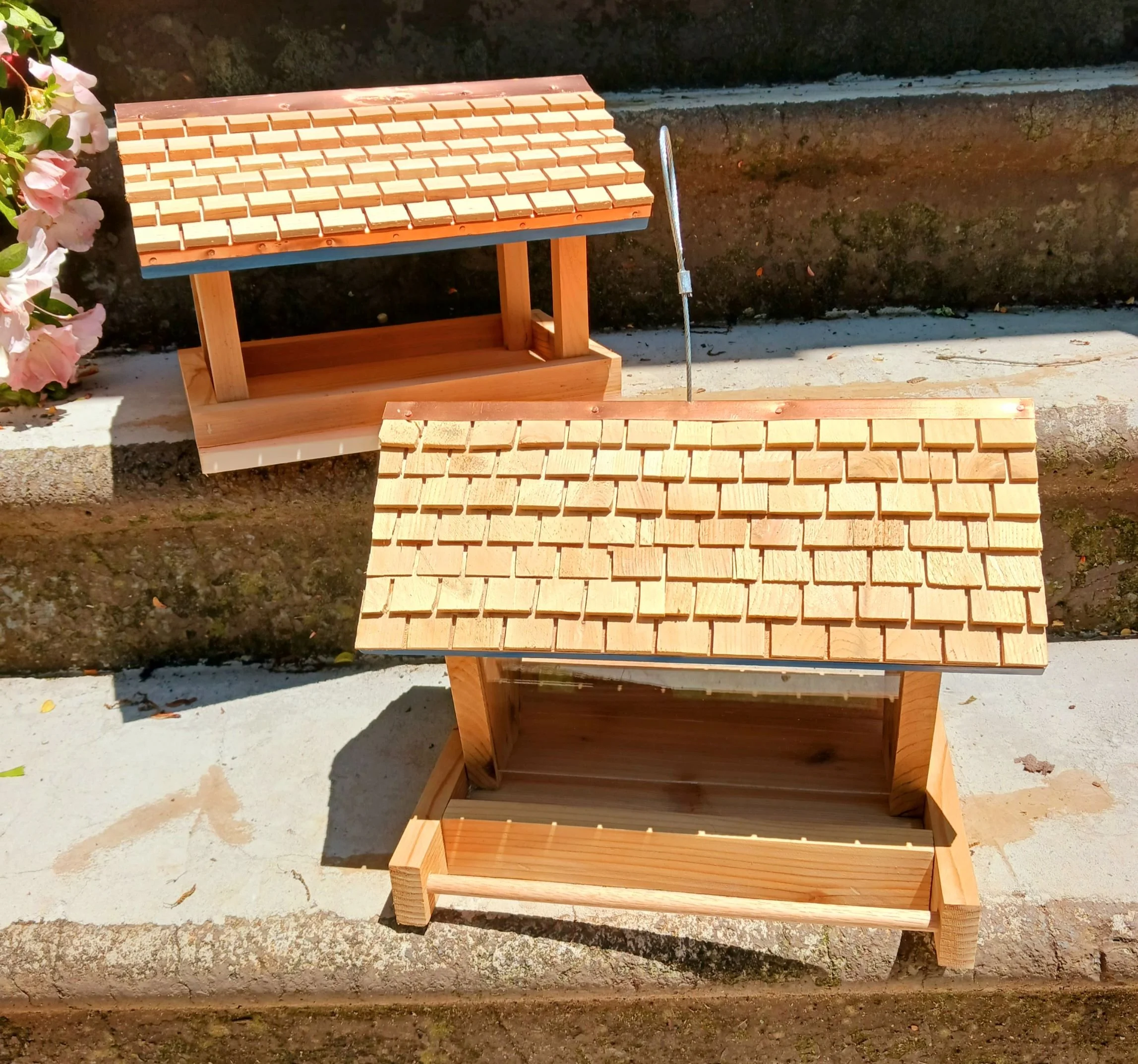 Hand Built Pottery Wood Birdhouses + Feeders
