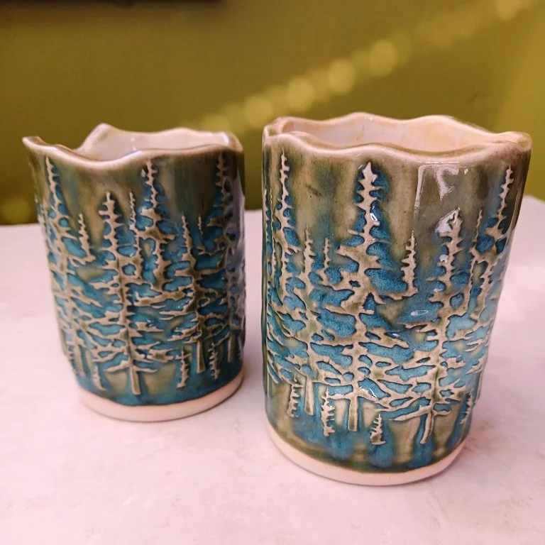 Colors are fascinating. Imagining how they will look when selecting. Seeing how they flow and settle in the final firing. My color palette keeps changing as the right colors are “found”. I use bright and deep-colored lead-free glazes.